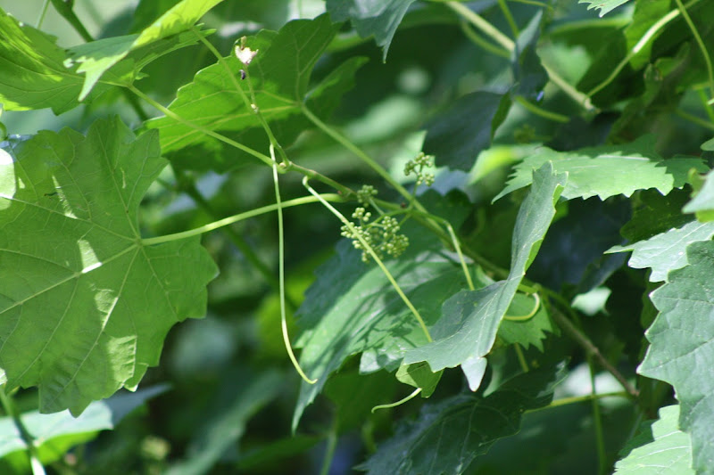 And last and the least far along at this time are the many muscadine vines we have and they are also loaded with these tiny grapes which won't get ripe until late September.