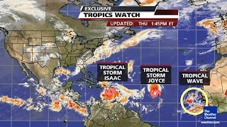 Another storm in the Atlantic Ocean is predicted to hit Florida or the Gulf coast next week. The national repulican convention is in Tampa,Fl so they are hoping it misses them. Tampa is the lowest city along the gulf coast. Someone maybe forgot that this is the middle of Hurricane season when they picked a city for the convention.