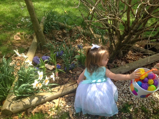 We all headed home afterward to our afternoon of fun activities. Seems the Easter Bunny had dropped colored eggs all around our yard.