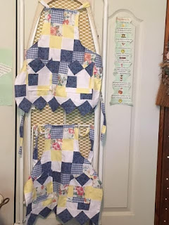 These are 2 more little girls aprons made from the curtain valances I bought at the flea market last month.