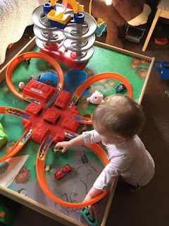 Little did hubbie and I know when we bought this little criss cross crash race track for g-son's Christmas several years ago how many kidos would follow him and enjoy this little track.