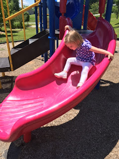 When IR woke up we had an early lunch with RL begging to go to the park again. We went to a closer park , Shuey Knols in Edneyville, and she was the only child there so she had a good time running from slide to slide. Look at that beautiful blue sky !!!