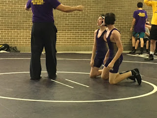 I got unloaded and then d-in-love picked up RL and we took IR out to the middle school where g-son was having a purple and gold first wrestling match.