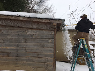 Looking at this path reminded me of a time when I was very young that my dad had to shovel paths from our house to the barn that looked a lot like this one.Then we went back and used an extended handled broom to rake the snow off the roofs of the hen house , the green house and Rocky's tarped lot.
